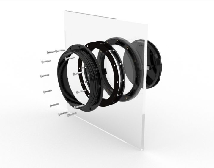 The bung assembly (150mm and 192mm circular port only) is adjustable for seal tension controlled by a centre knob. For safety, the bung may be locked in position to prevent it being sucked into the box.